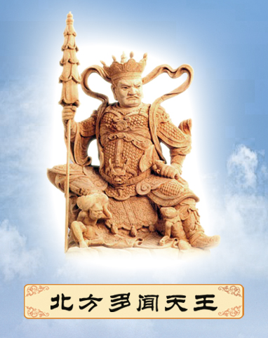 北方天王手上拿著一把傘,「傘」是遮蓋,防止汙染的意思。我們每天接觸這千變萬化的世界,在廣學多聞中,要懂得保護自己的清淨心,不受污染。對現實社會需有充分認識理解,才有智慧、有能力,知道自己如何處事待人接物,能做到盡善盡美。