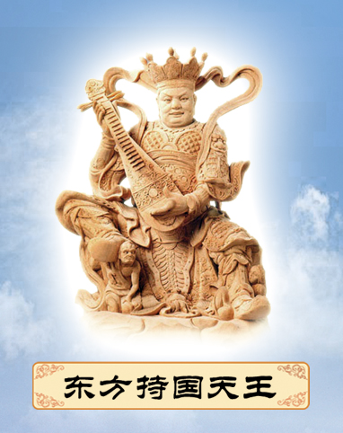 東方持國天王,「持」是保持,如何能保持國家?負責盡分。我們每個人在社會上,都有自己的身分。主持一個家庭的事務,是一家之主。主持一個公司的事務,是總經理、董事長。主持一個國家的事務,是帝王、總統。中國儒家講「五倫十義」,每個人都有應盡的義務,必須認真做到。